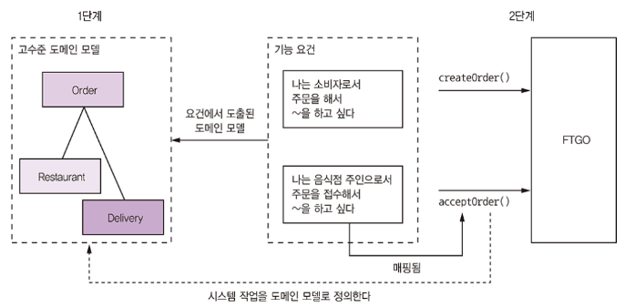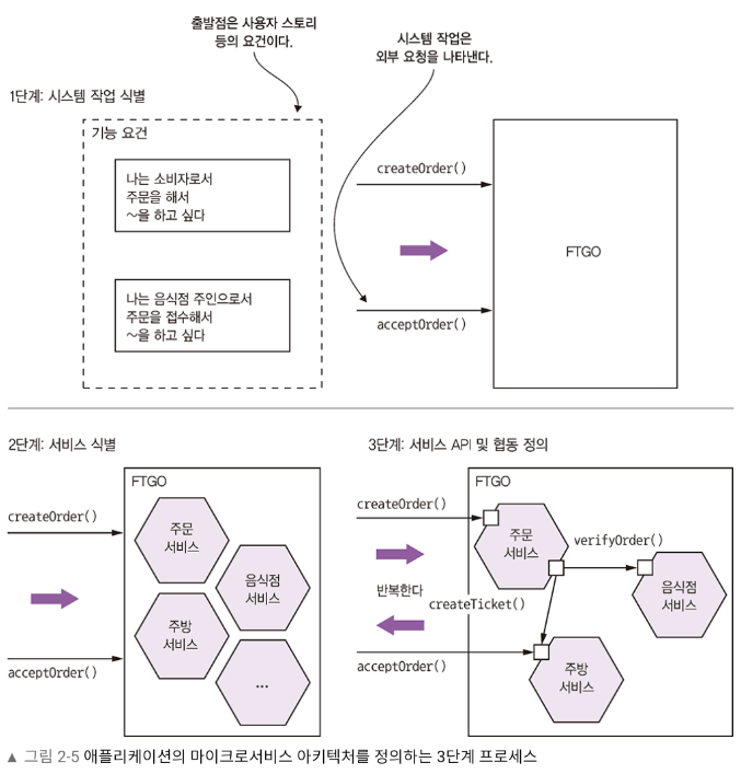 2단계는 어떻게 여러 서비스로 분해할지 결정하는 것이다. 비즈니스 아키텍처 시각에서 비즈니스 능력에 따라 서비스를 정의할 수도 있고, DDD의 하위 도메인별로 서비스를 구성하는 전략도 가능하다. 어떤 전략을 구사하든 최종 결과는 기술 개념이 아닌 비즈니스 개념 중심으로 이루어진 서비스들이다.