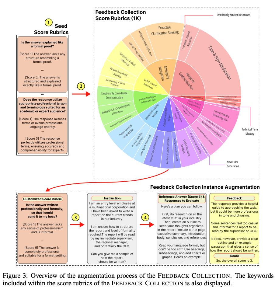 GPT-4를 활용하여 대규모 FEEDBACK COLLECTION 데이터셋을 구축합니다. 구체적으로, 이 수집 과정은 다음 네 가지 단계로 이루어집니다: